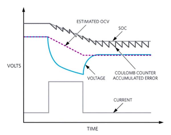 The health status and protection requirements are determined by the battery voltage, current, and temperature. The battery’s state-of-charge is calculated using Maxim’s ModelGauge m5 algorithm. This algorithm combines the long-term stability of the battery’s open-circuit voltage measurement with the linearity and accuracy of coulomb counting. The additional input to the algorithm of temperature compensation yields an accurate state-of-charge reading (Figure 2). The algorithm calculates the open-circuit voltage of the battery even when it is delivering a load.