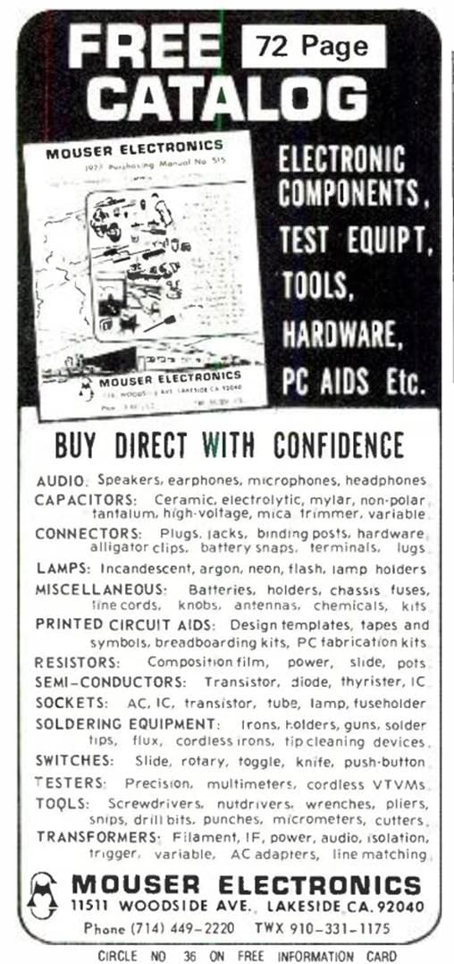 Mouser Ads from Popular Electronics, 1977 and 1982. Click to view.